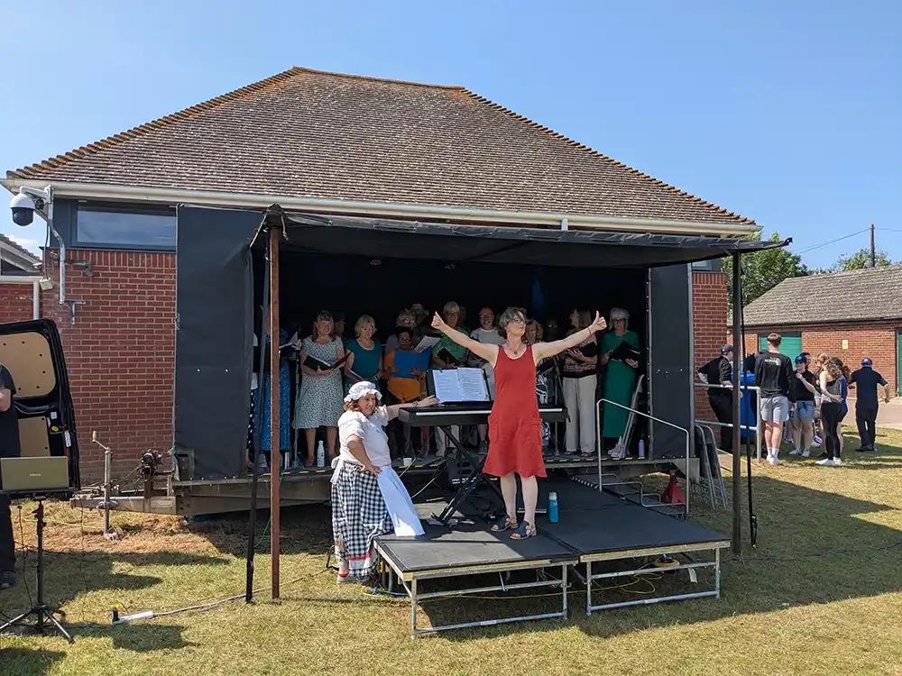 We performed live from 3:00 to 3:45 pm, singing a range of songs selected by both choir members and our Musical Director Emma Biston. The sun shone for us and everyone had a great time.